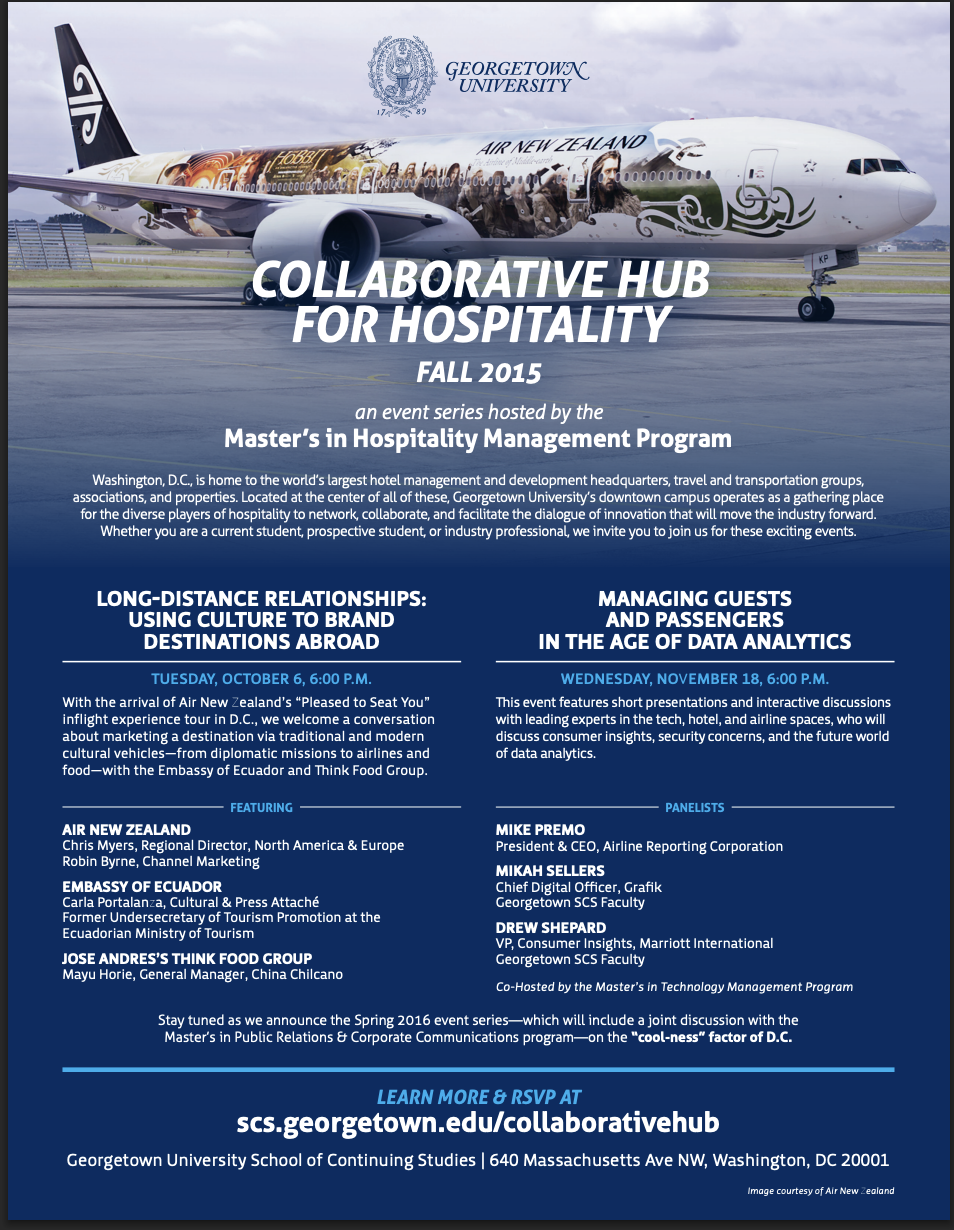 Conceived and produced a quarterly event series at Georgetown University bringing together hospitality industry voices across hotels, restaurants, tourism, and food and beverage.
